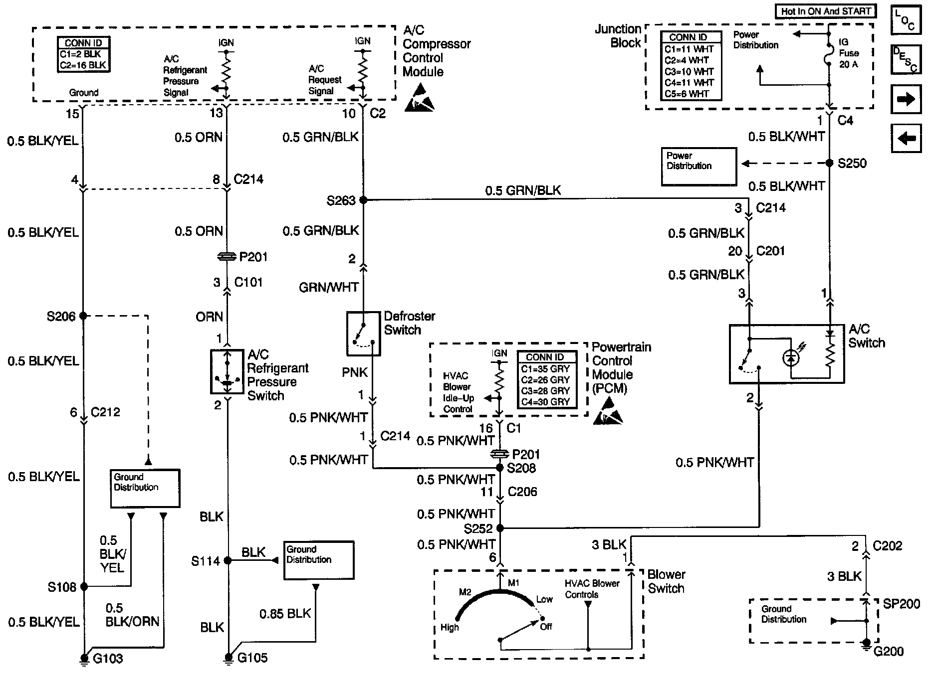 HVAC Compressor/Condenser Fan Control Schematics: Ground, A/C And Pressure Switches: