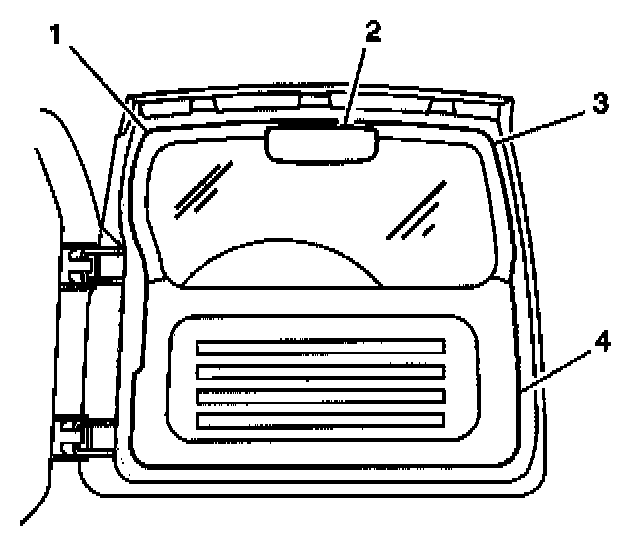 3. Install the high mounted stoplamp (3) to the rear door. Secure the stoplamp with the 2 screws (1).