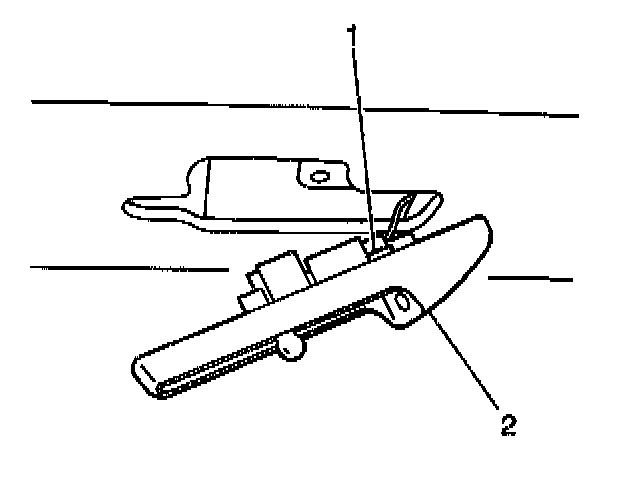 2. Install the dome lamp assembly (2) to the vehicle. Secure the dome lamp with the 2 screws (1).