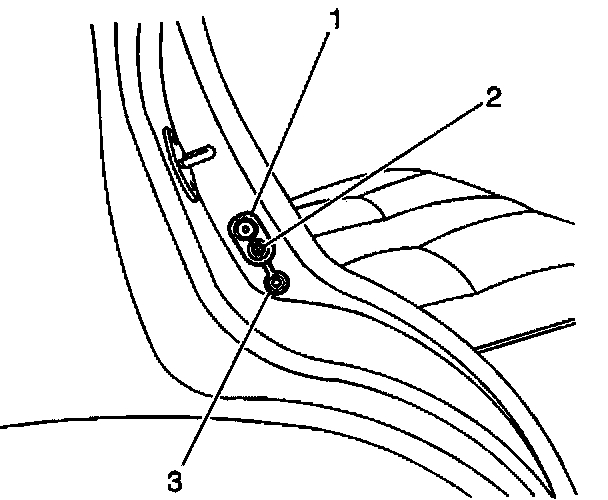 2. Open the rubber cap (3) in order to gain access to the door jamb switch retaining screw (2).