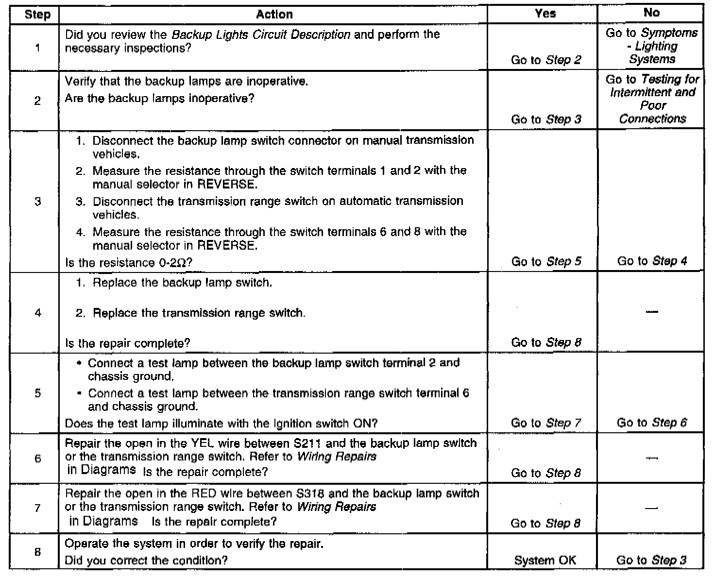 Backup Lamps Inoperative: