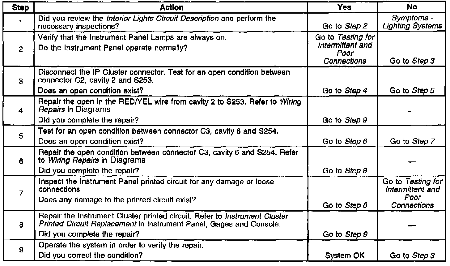 Instrument Panel Lamps Always On: