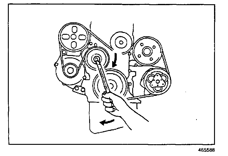 1.1. Use a wrench and rotate the belt tensioner clockwise.