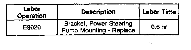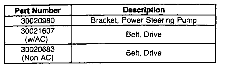 Replace the power steering pump bracket and serpentine belt with the service parts using the procedure and part numbers listed below.