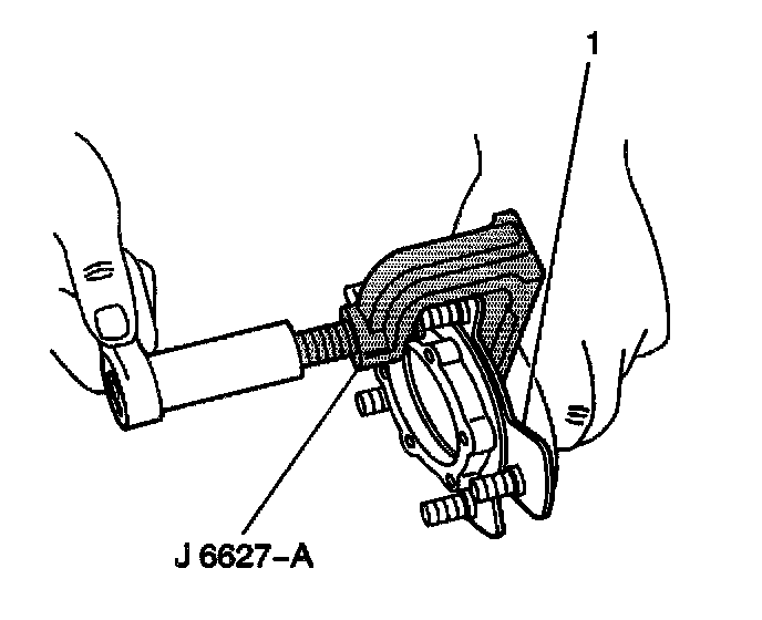 6. Use the J6627-A in order to remove the 5 wheel bolts from the hub (1).
