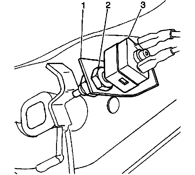 4. Screw the CPP switch (3) clockwise into the brake pedal bracket (3) until continuity is obtained.