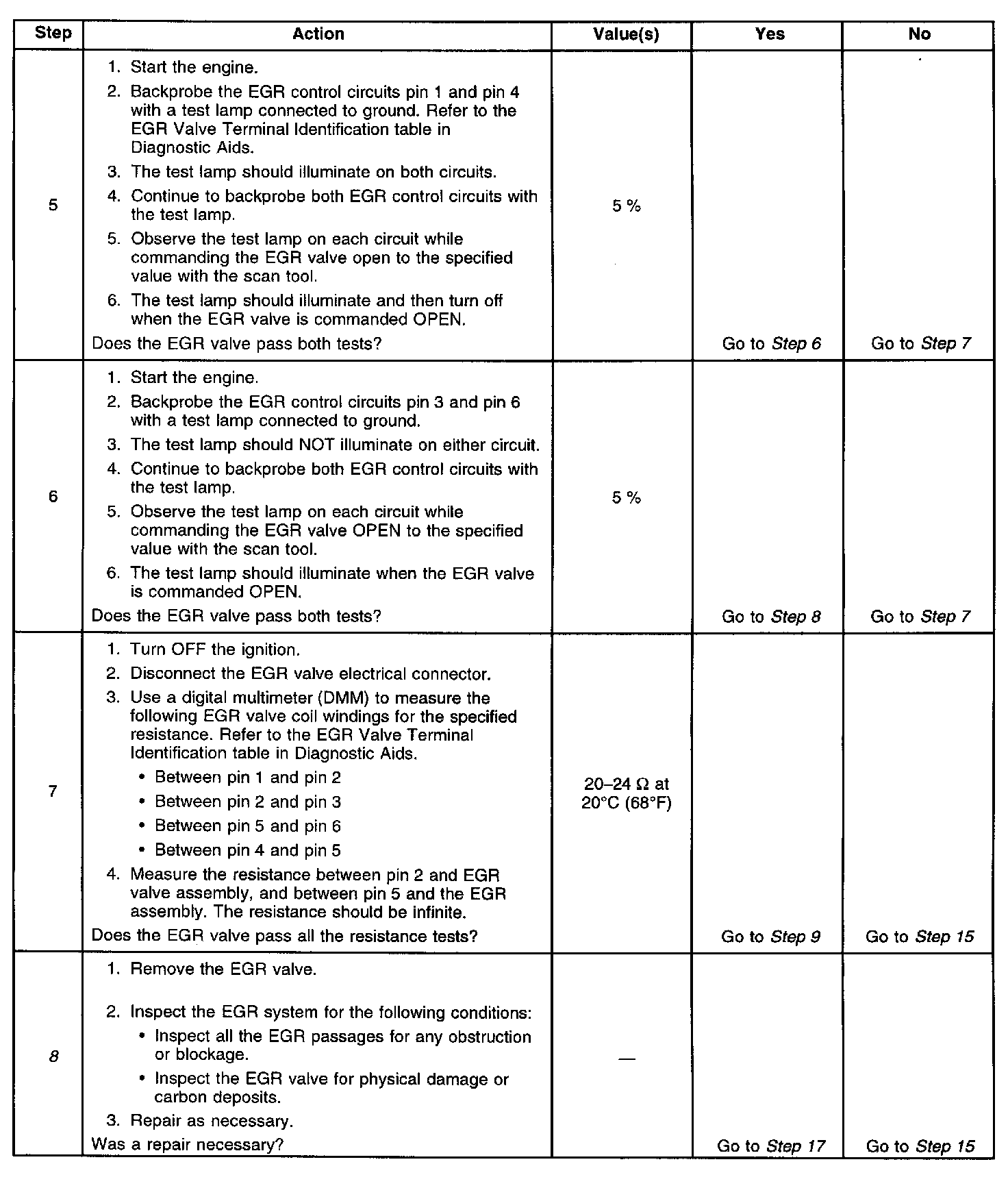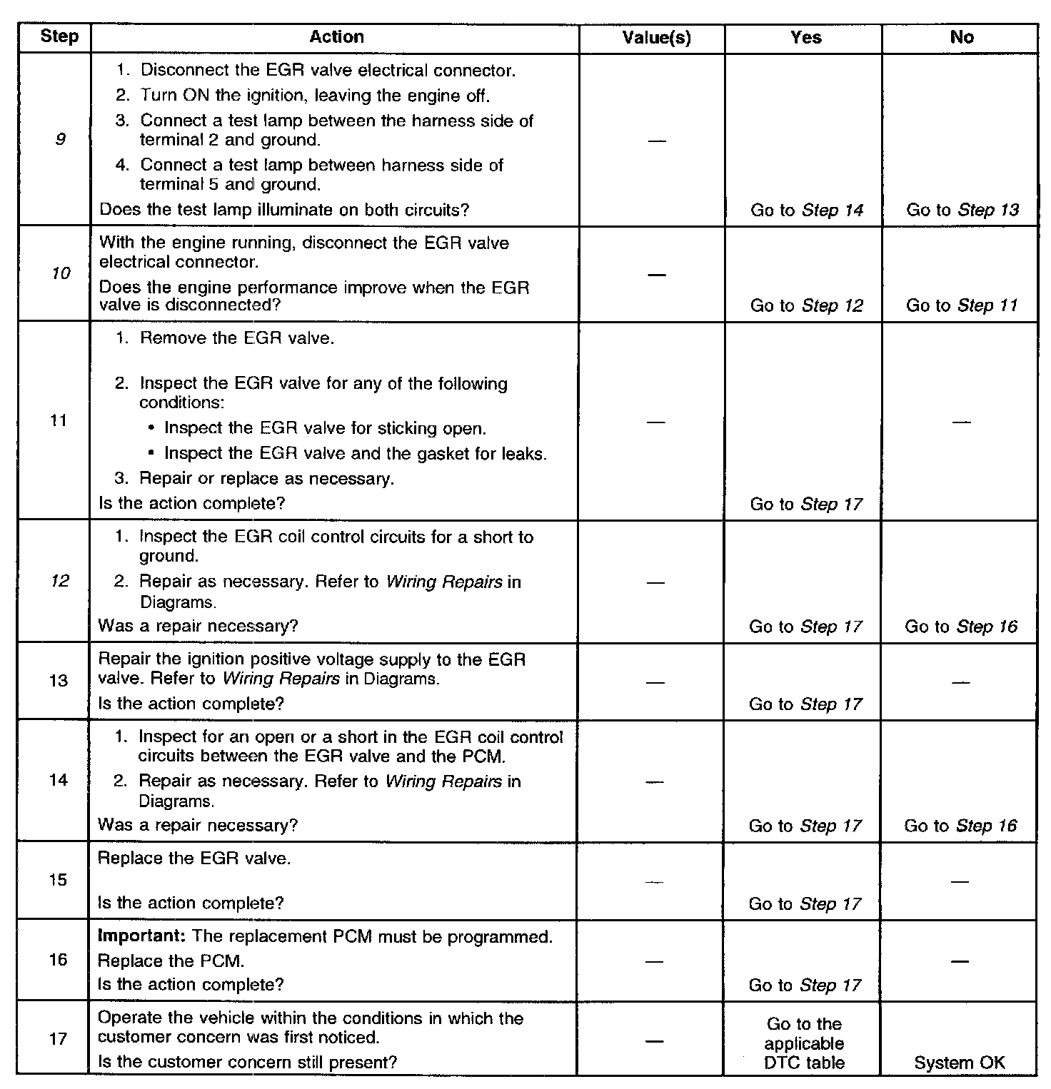12. This step checks for an EGR valve control circuit that is shorted to ground. If the circuit wiring is OK, a faulty PCM with an internally shorted circuit can cause the EGR valve to be open.