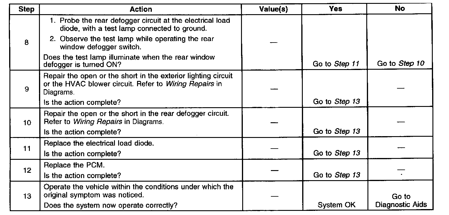 7. This step checks for a fault in the circuit between the PCM and the electrical load diode. The electrical load diode is located below the glove box and behind the PCM.