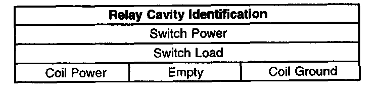 Use the relay cavity table in order to locate the correct cavities to probe during diagnosis. The table layout corresponds to the cavity layout of the relay block.