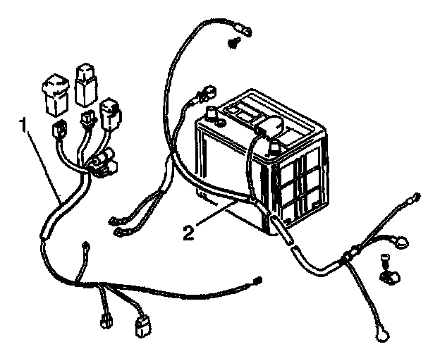 ^ Both the positive and negative battery cables are serviced as 1 harness assembly (2).