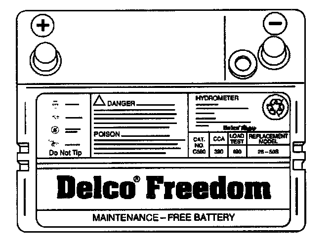 A battery has two ratings: a reserve capacity rating at 27°C (80°F) which is an estimate of the time a fully charged battery will operate the vehicle with no generator operation; and a cold rating at -18°C (0°F) which indicates the cranking load capacity.