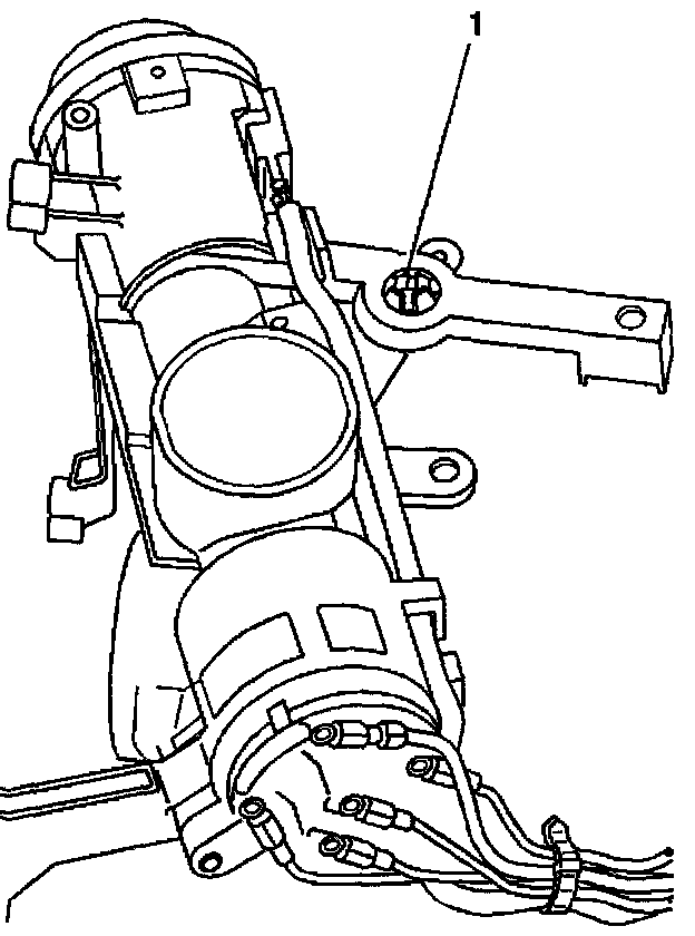 6. Remove the phillips head screw attaching the transmission park lock cable housing to the arm on the ignition switch lock cylinder housing.