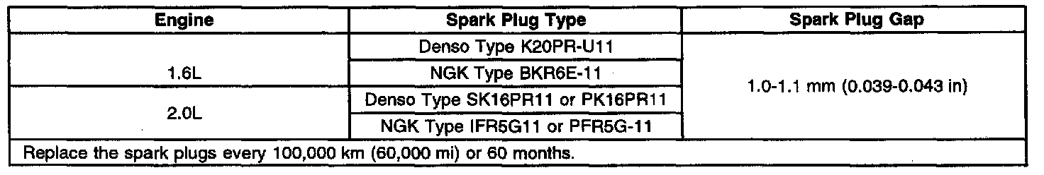 Spark Plug Usage: