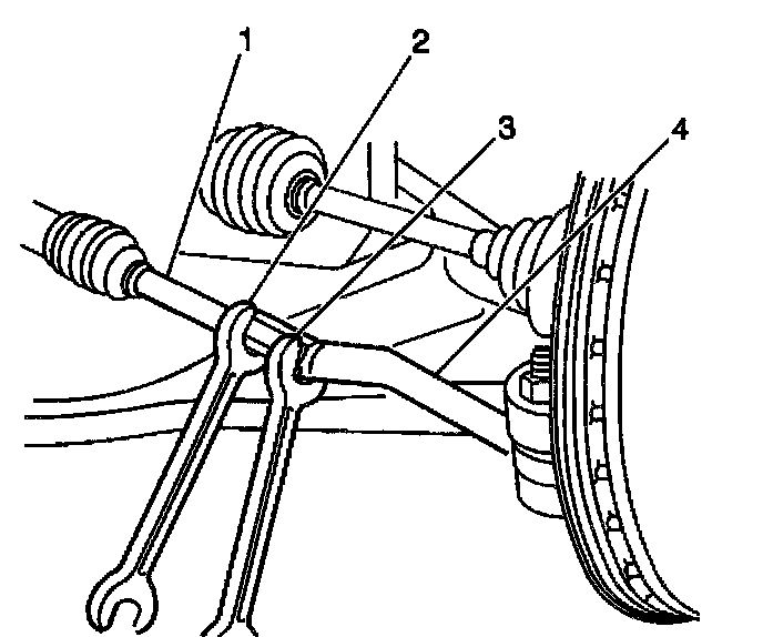 3. Rotate the left tie rod (1) and the right tie rod by the same amount. Rotate the left tie rod and the right tie rod until the toe-in measures 0.0 degrees. Refer to Wheel Alignment Specifications.