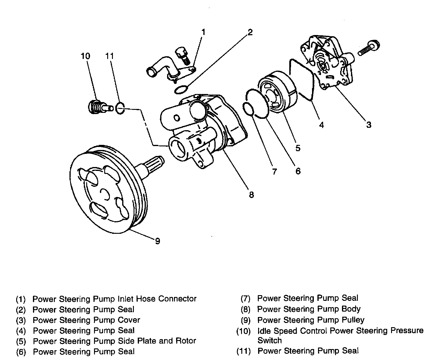 Power Steering Pump Description (2.OL)The power steering pump is a vane-type pump. The drive belt, coming from the crankshaft pulley, drives the power steering pump.
