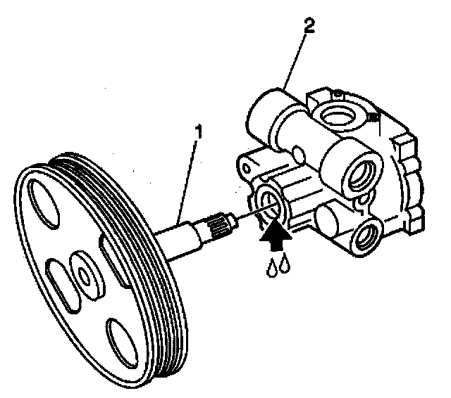 3. Insert the pulley's shaft from the oil seal side of the pump body (2).