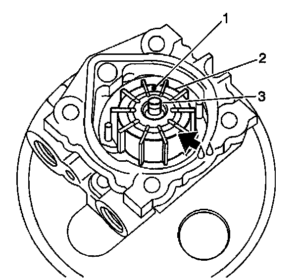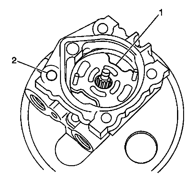 16. Apply DEXRON (R)-III Automatic Transmission Fluid, GM P/N 12346143, or equivalent, to the sliding surface of the pump cover (2) and the rotor.