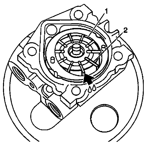 9. Apply DEXRON (R)-III Automatic Transmission Fluid, GM P/N 12346143, or equivalent, to the sliding surface of the cam ring (1).