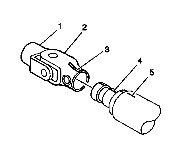 3. Align the match marks (4,5) with the opening (3) in the lower steering shaft universal joint (2). Install lower steering shaft to the pinion shaft.