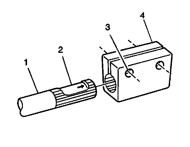 1. Ensure the steering wheel and the front tires and wheels have not moved since the removal of the steering shaft coupling.2. Align the opening in the steering shaft coupling (4) with the match mark on the flat surface of the lower steering shaft (2). Slide the steering shaft coupling onto the lower steering shaft.