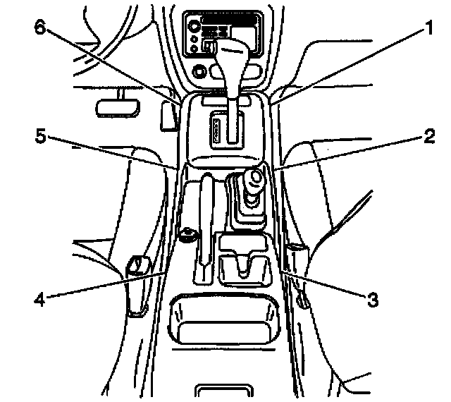 6. Secure the console box with the 2 plastic retaining clips (2,5) and the 4 screws (1,6,3,4).