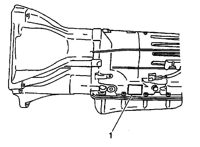 The transmission identification plate (1), which contains the serial number, is located on the left side of the transmission case, just above the oil pan.