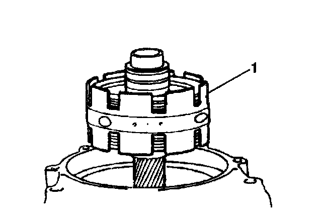 1. Rotate the transmission to the upright position.2. Remove the center support bolts (1).