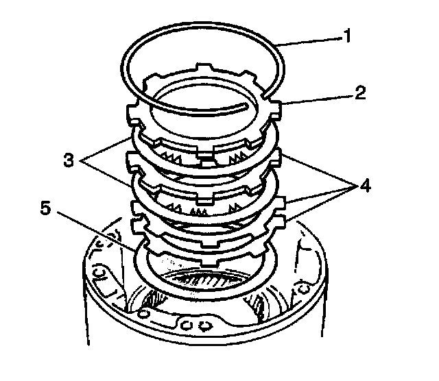 11. Install the overdrive clutch plates (1) and discs in the following order: