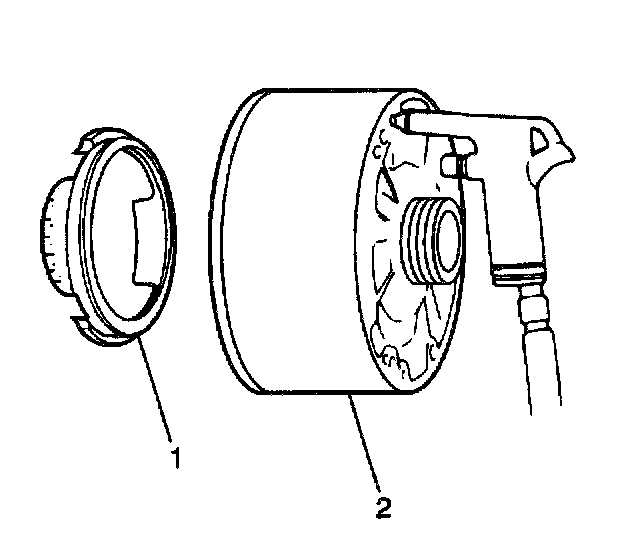 6. Apply low compressed air into the overdrive case (2) fluid hole in order to remove the brake piston (1).