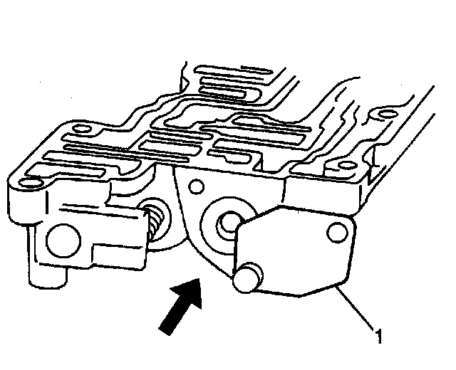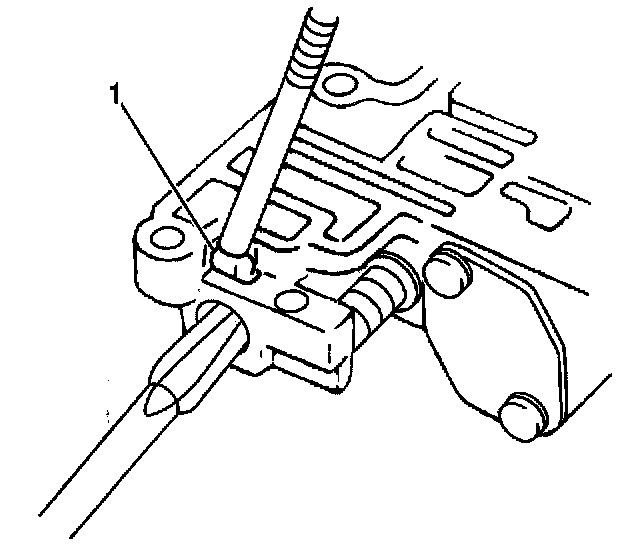 11. Slightly push in the throttle valve while removing the locating pin from the down shift plug using a magnet (1).