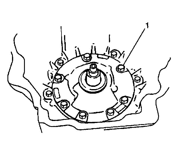 12. Install the oil pump bolts (1), aligning the holes in the oil pump with those in the transmission case.