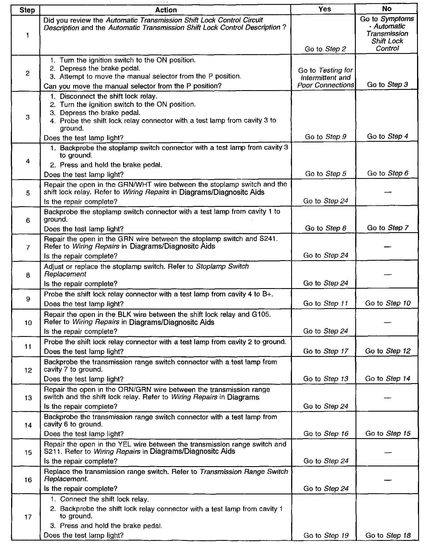 Automatic Transmission Shift Lock Control Inoperative