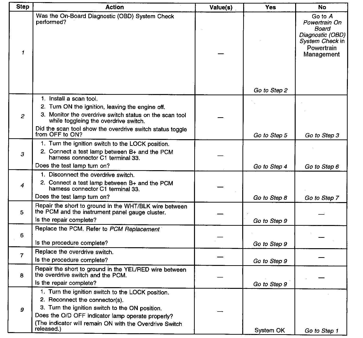 ^ A short to ground in the OD switch signal between the OD switch and the PCM