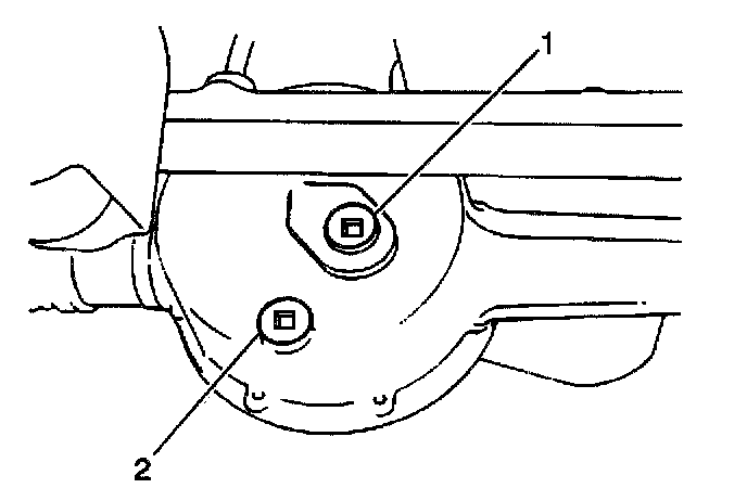 2. Drain the front differential housing oil (2). Refer to Lubricant Change.