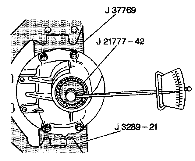 5. Rotate the J 21777-102 25 revolutions with the differential dummy attachment to ensure the pinion bearings are fully seated.