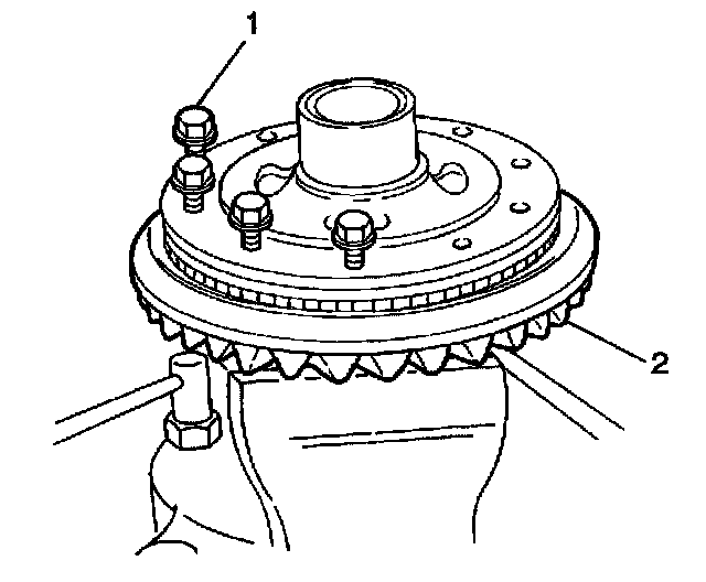 ^ Tighten the ring gear bolts to 90 Nm (65 ft. lbs.).