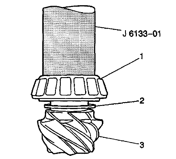 35. Install the pinion bearing (1) onto the pinion gear shaft. Use the J 6133-0 1.