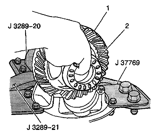 Important: After the correct end play and preload has been obtained, remove the ring gear bolts and apply GM P/N 12345493, or the equivalent, to the threaded portion of each ring gear bolt and install into the differential case assembly.