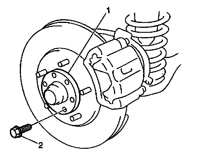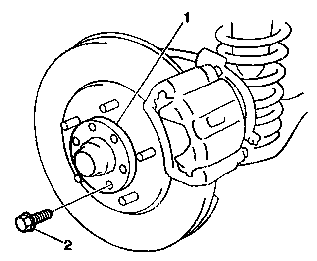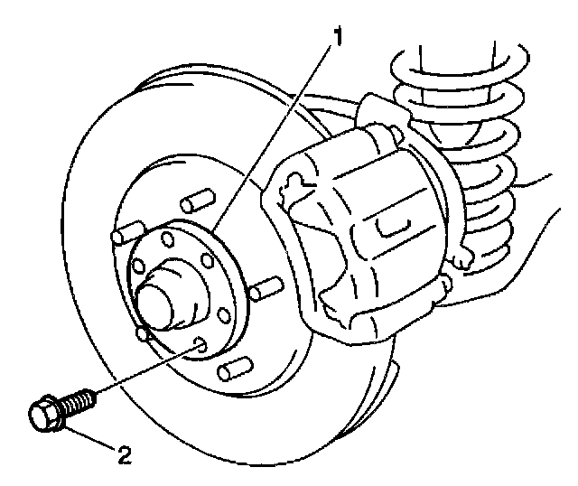 4. Remove the front tire and wheel assembly. Refer to Tire and Wheel Removal and Installation in Steering and Suspension.