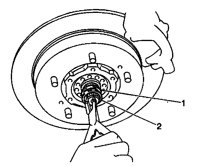 9. Install the drive axle shaft spindle washer (1) onto the drive axle shaft.