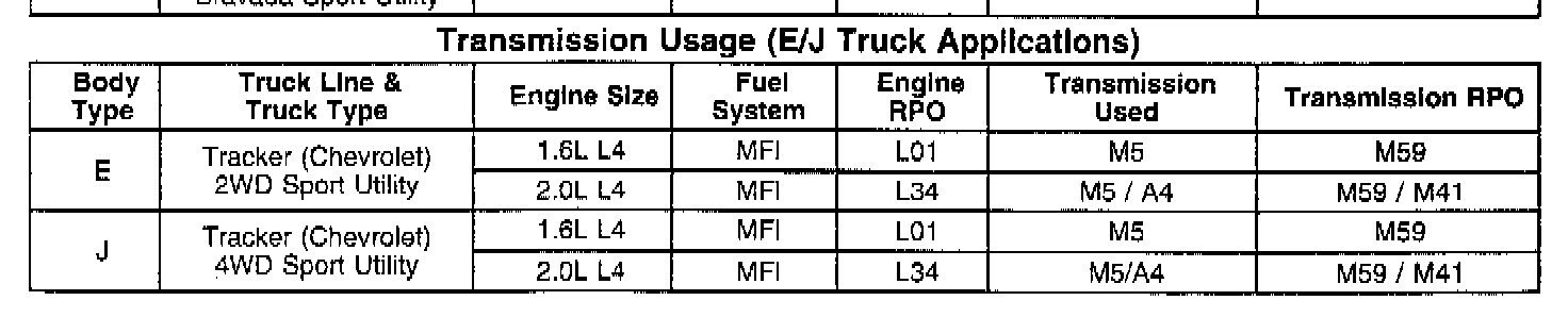 Transmission Usage (E/J Truck Applications):