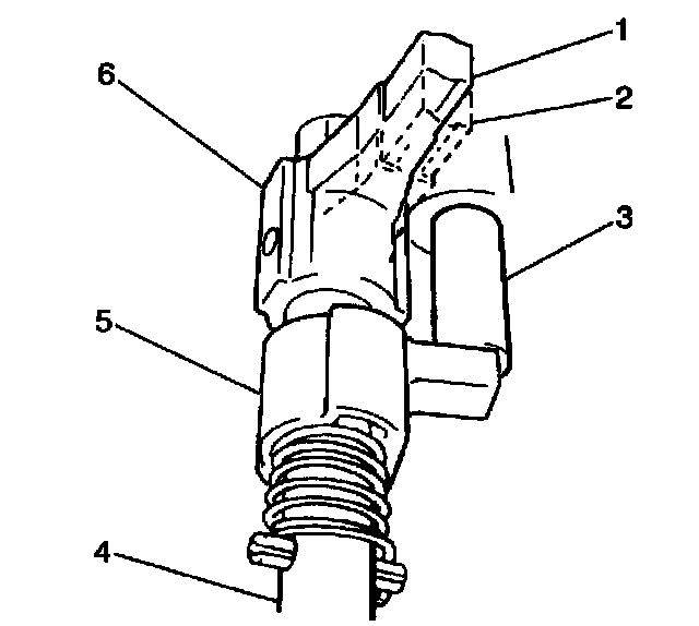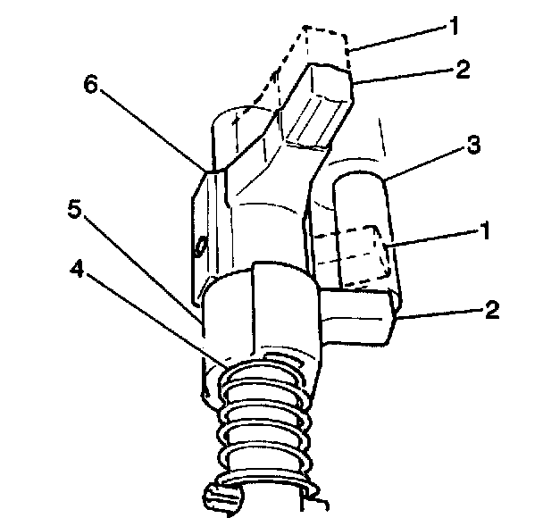 The reverse gearshift limit yoke (5) is located in the gearshift lever case and rides on the gearshift shaft. The reverse gearshift limit yoke prevents the transmission from being shifted directly from fifth gear (1) to reverse. When the transmission shifts into 5th gear, the gearshift limit spring (4) turns the gearshift limit yoke clockwise causing the reverse gearshift limit yoke to land on the reverse gearshift limit bolt (3). This action prevents a 5th-to-reverse gearshift.