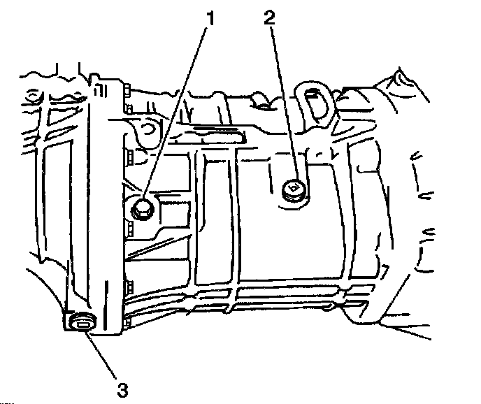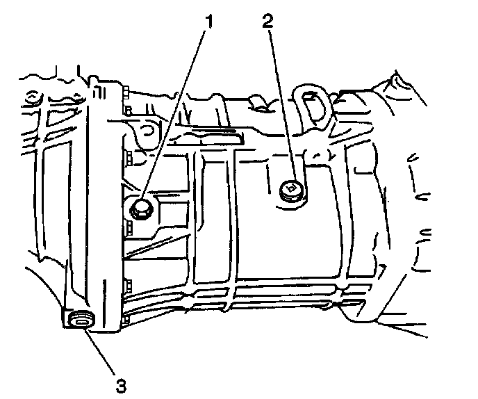 6. Apply GM P/N 12346004, or equivalent, to the threaded portion of the transmission drain plug (3).