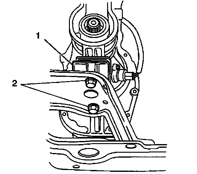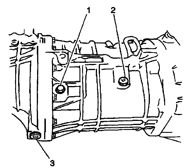 15. Remove 2 bolts (2) from the rear transmission mount.