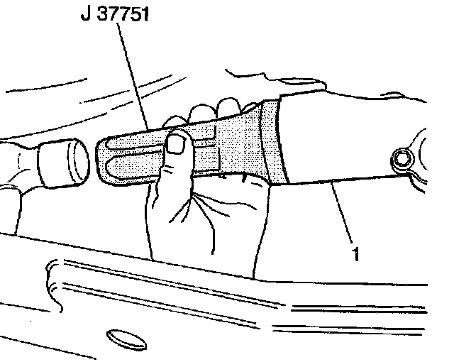 1. Install the new rear output shaft oil seal into the transfer case (1) using J 37751.