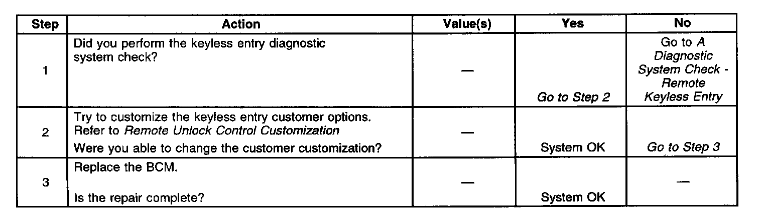 Keyless Entry System Does Not Change Customization Modes