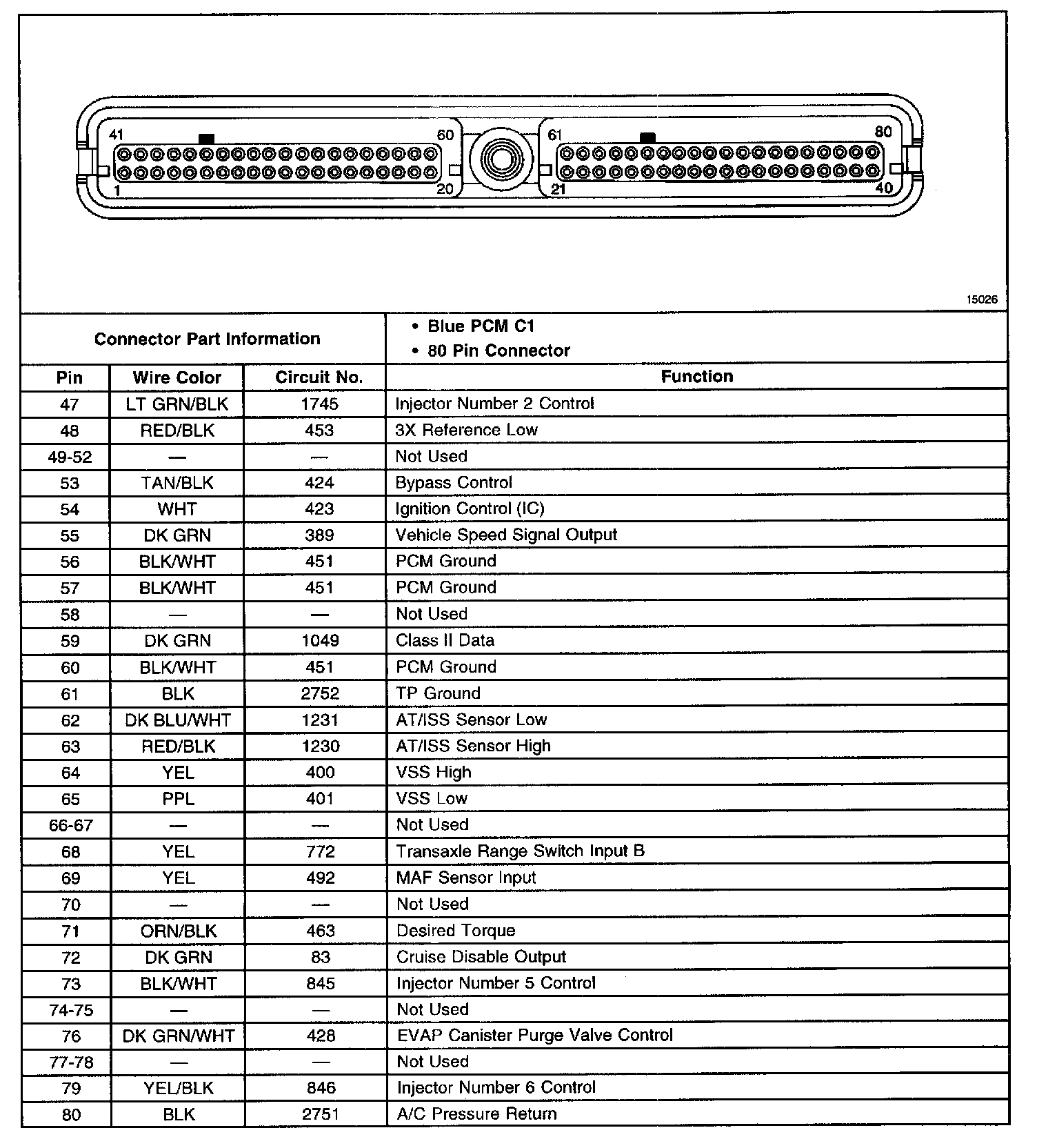Powertrain Control Module (PCM) Connector C1 (Part 2 Of 2):