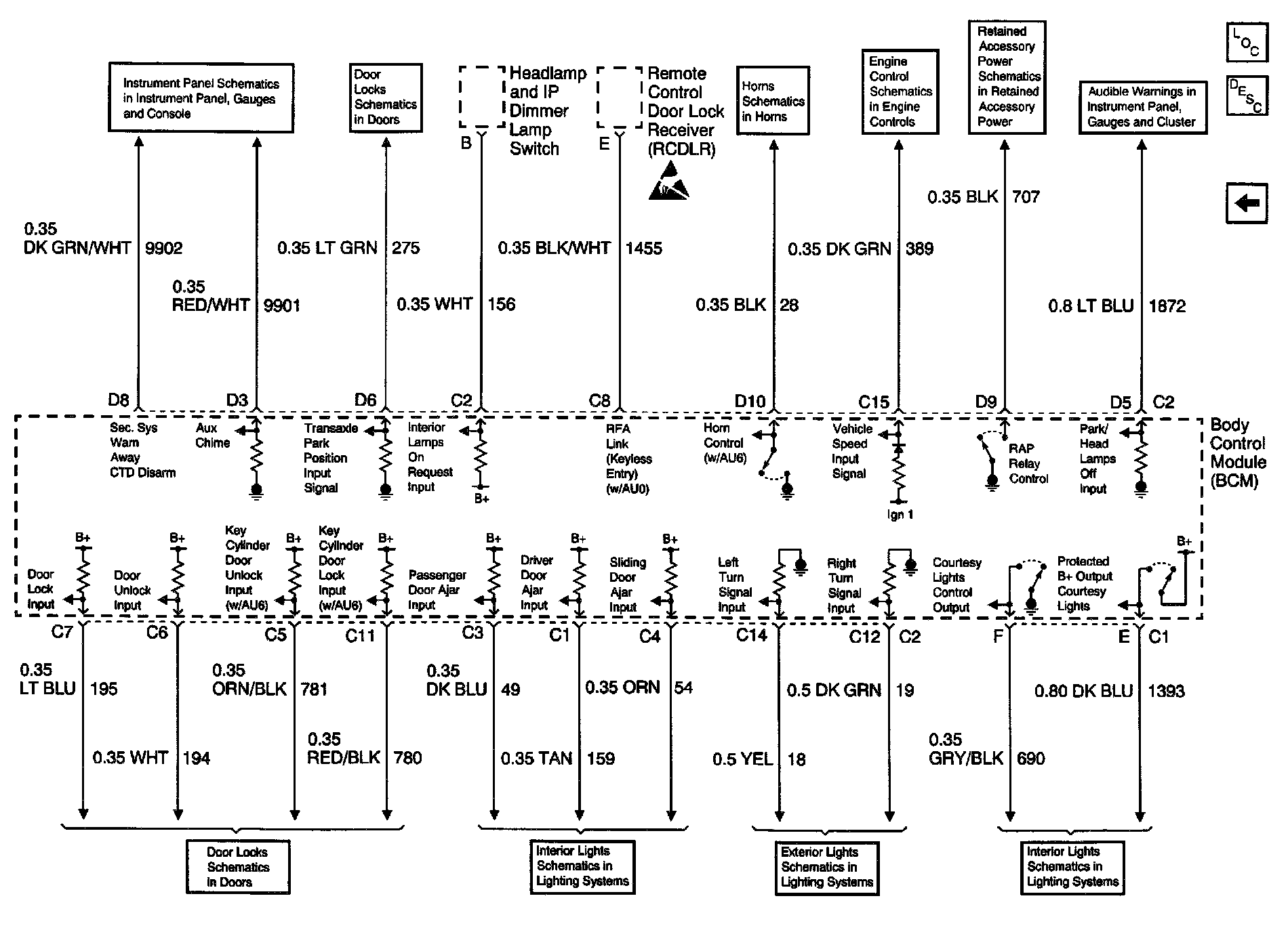Body Control Module Schematics (BCM: Interior Lights On Request, Horn Control):