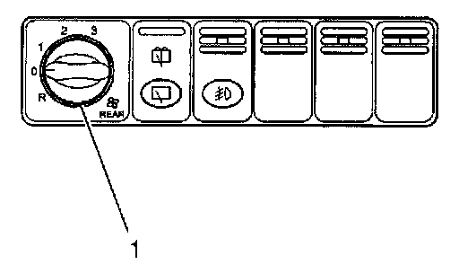 The knob (1) on the left side of the multifunction switch controls the rear fan speed from the driver's compartment. To turn the fan off, turn the knob to the OFF position. To allow the rear passengers to control the rear fan speed from the rear fan control, turn the knob to the R position.