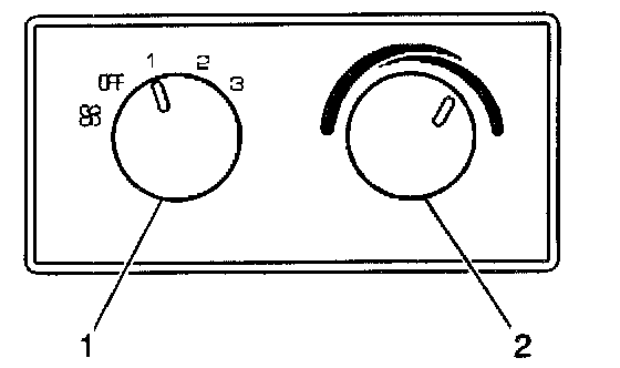 The knob (1) on the left side of the control assembly controls the fan speed. To turn the fan off, turn the knob to the OFF position. This control will only function if the rear master fan control is set to R.